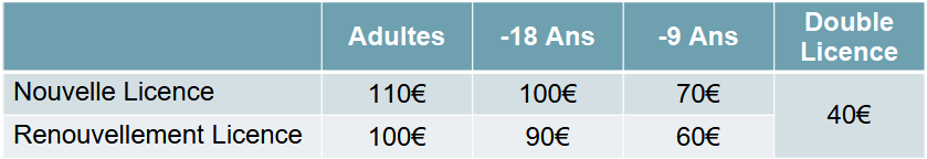 Le tarif de base étant de 80€ et la participation aux entrainements compétiteurs coûte 10€ supplémentaires.